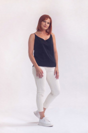 Топ женский на бретелях прямого силуэта, с нагрудной вытачкой из бокового шва.