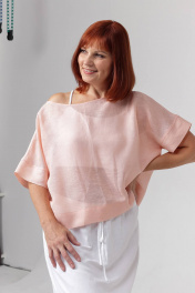 Блуза женская oversize. Подойдет от 44 до 50 размера. Длина по спинке - 51 см. Ширина по низу - 128 см. Ширина в области проймы - 140 см.