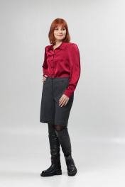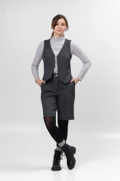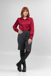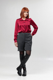 Женские шорты со стрелками. Перед с карманами, спинка - с вытачкой. Пояс на резинке в области спинки. Посадка высокая.