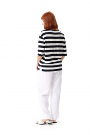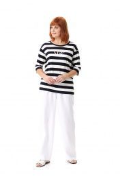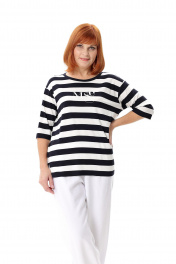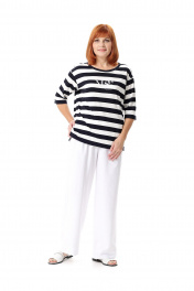 Блуза женская из трикотажного полотна, свободного покроя, со спущенным плечевым швом. В боковых швах разрезы. Длина рукава по плечевому шву - 45 см, длина изделия по спинке - 64 см. Ширина изделия в области разрезов: размер 46-48 - 102 см; размер 50-52 - 112 см.