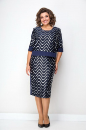 Платье женское полуприлегающего силуэта из очень красивой костюмно-плательной ткани с красивым рисунком «волна»-серебристого цвета. Платье имитация костюма. В качестве отделки используются планки из однотонной ткани.По переду нагрудные выточки. Рукав ¾, чуть ниже уровня локтя. По спинке обработана потайная молния. Есть шлица. Платье на хлопковой подкладке. Украшает это платье съемный воздушный цветок. В 50р длина рукава-38см, длина изделия-108см. 50 Обхват бюста - 100см, Обхват талии - 80-84см, Обхват бёдер - 108см. 52 Обхват бюста - 104см, Обхват талии - 84-88см, Обхват бёдер - 112см. 54 Обхват бюста - 108см, Обхват талии - 88-92см, Обхват бёдер - 116см. 56 Обхват бюста - 112см, Обхват талии - 92-96см, Обхват бёдер - 120см. 58 Обхват бюста - 116см, Обхват талии - 96-100см, Обхват бёдер - 124см.