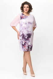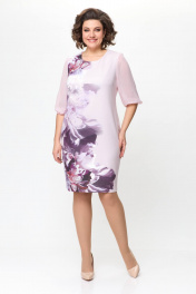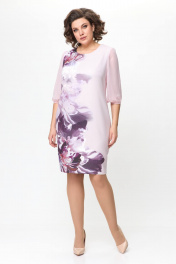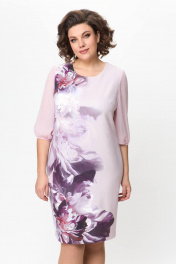 Нарядное приталенное платье из ткани и шифона с рукавом 3/4 Solomeya Lux 890 розовый