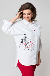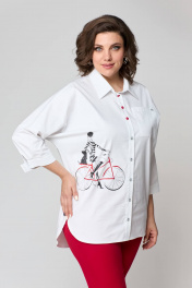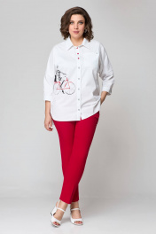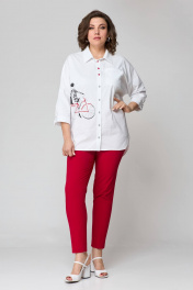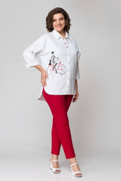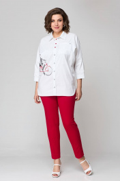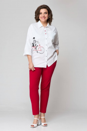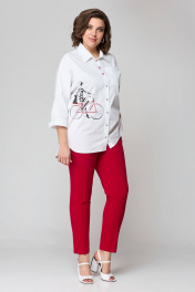 Блуза и брюки из текстиля с фигурами и пуговицами лето Solomeya Lux 931б белый+красный