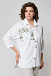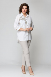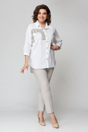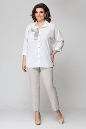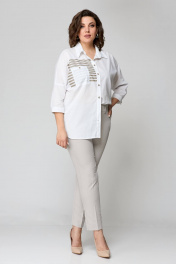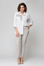 Бежевый комплект блуза и узкие брюки на пуговицах лето Solomeya Lux 931в белый+бежевый