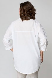 Комплект женский состоит из блузы и брюк. Блузка удлиненная, свободного кроя. Передняя часть блузы (полочка) свободного кроя без талиевых вытачек с накладным карманом. Застежка-планка с прорезными петлями на пуговицах. Спинка свободного кроя без талиевых вытачек. По центру спинки кокетка. Воротник рубашечного типа на стойке. Низ изделия с фигурными вырезами по боковому шву. Украшением изделия служит печать. Линия плеча спущенная, рукав притачной по низу рукава манжет с застежкой на пуговицу. Подойдет для женщин разной возрастной категории и разного телосложения. Можно носить как вместе, так и отдельно. Брюки заужены к низу, на широком поясе, по переду карманы, застёжка - молния и пуговицы. Деликатная стирка при 30 градусах!