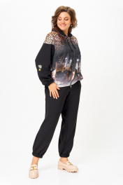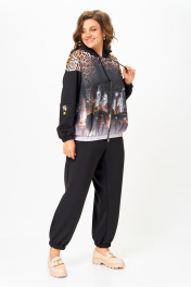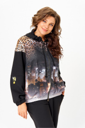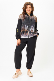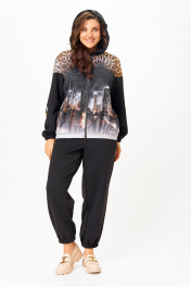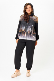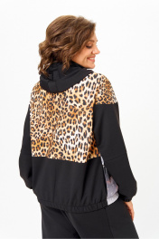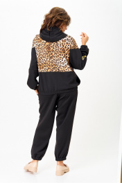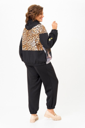Костюм спортивный брюки куртка больших размеров Solomeya Lux 946/449 черный+леопардовый_принт