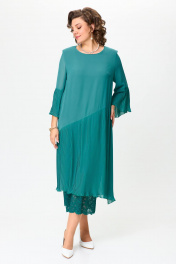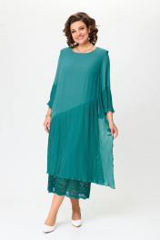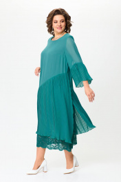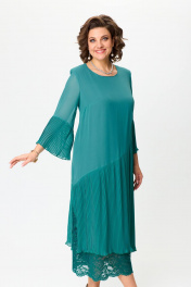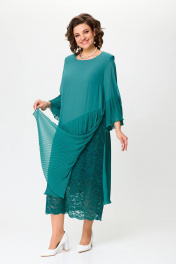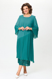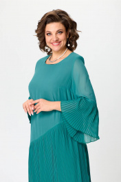 Красивое нарядное платье для женщин разной возрастной категории. Платье с рукавом 7/8. По низу рукава отделка из ткани плисе, рукав свободный. Вырез горловины круглой формы деликатно повторяет контур шеи. Свободное не облегающее платье с подрезом от линии бедер вниз. Нижняя часть изделия выполнена из ткани плиссе и гипюра. По боковым швам плиссе с разрезами. По низу юбка плиссе ассиметричной длины. Спинка прямая без талиевых вытачек. Платье на подкладке. Обращаем Ваше внимание, что данное изделие нужно стирать в домашних условиях ручной стиркой при 30 градусах. Высокая температура может привести к разглаживанию складок. Используйте неагрессивные средства для стирки. Сушить на плечиках, утюжить только гладкую ткань. Размеры 52-58. Длина изделия 124-126 см.