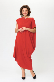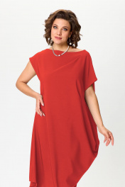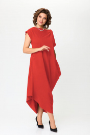 Красное свободное платье с асимметричным вырезом и складками Solomeya Lux 975 красный