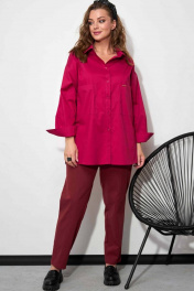 Женская рубашка на каждый день! Рубашка-оверсайз – настоящий «маст-хэв», который сделает образ стильным в любом размере. Именно в таком контексте мы предлагаем, казалось бы простую рубашку - оверсайз. Есть массу вариантов сделать ее модной, а образ аховым.... Можно вместо бабочки использовать длинные бусы или бусы-галстук. Смелее экспериментируйте с вариантами и Вы будите неотразимы и неповторимы! Рукав с углубленной проймой и со спущенным окатом. По спинке встречная складка. Длина изделия, см: по переду 77 см, по спинке 81см. Длина рукава, см: от горловины 70см Размер единиый - 50-56. Ширина рубашки на уровне груди в размере 50-56 -63 см, в размерах 58-62 - 70 см