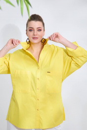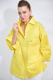 Демисезонная рубашка оверсайз из текстиля с встречной складкой SOVA 11078 желтый