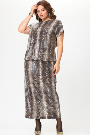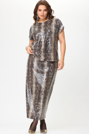 Бежевый костюм из трикотажа с пайетками, юбка и блузон SOVA 11264