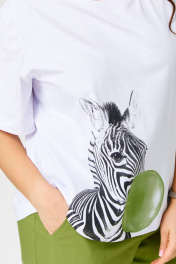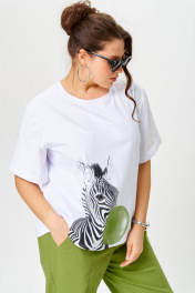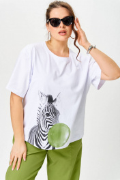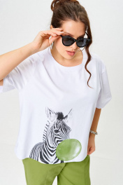 Футболка свободного кроя с круглым вырезом и короткими рукавами. Ткань вискоза. Принт . Длина изделия 50-52 65 см, рукав 25 см 54-56 67 см, рукава 30 см 58-60 70 см, рукав 30