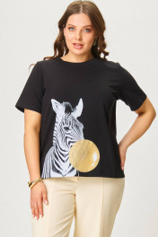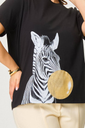 Футболка свободного кроя с круглым вырезом и короткими рукавами. Ткань вискоза. Принт . Длина изделия 50-52 65 см, рукав 25 см 54-56 67 см, рукава 30 см 58-60 70 см, рукав 30