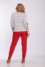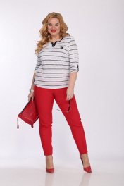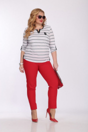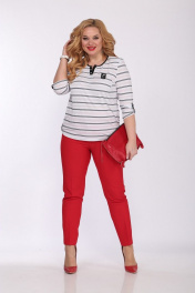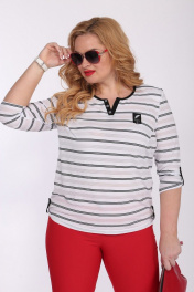 Блузка женская полуприлегающего силуэта, с втачными одношовными рукавами. Для регулировки длины рукавов имеется пата с пуговицей. Перед цельный, с нагрудными вытачками, выходящими из проймы. Горловина округлая, окантованная косой бейкой. Вырез горловины фигурный. Спинка цельная. По низу боковых швов блузка украшена патой с пуговицей. Рост модели 173 см. С плечевыми накладками. Длина спинки по среднему шву в 52 р. – 64 см. Длина рукава – 39 см. Ширина рукава на уровне груди – 19 см. Полуобхват проймы – 28 см