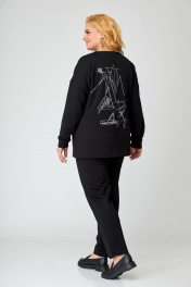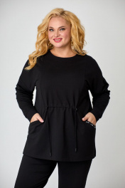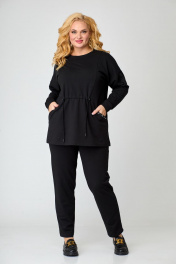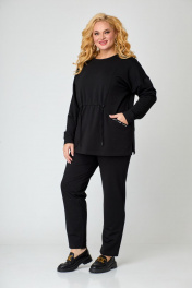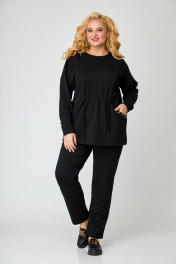 Модный женский костюм, состоящий из туники и брюк. Туника свободного кроя с круглым вырезом горловины. По передней половинке туники в рельефах выполнены карманы. По полочке чуть выше талии настрочена кулиса, в которую вдет шнур с фиксаторами. По спинке стильная печать. Брюки прямого силуэта c функциональными карманами. Брюки: 54,56,58 Обхват талии: 100, 104, 108 см. Обхват бедер: 116, 120, 124 см. Длина: 103 см. Туника: 54,56,58 Обхват груди: 120, 124, 128 см. Обхват бедер: 124, 128, 132 см. Длина рукава от горловины: 75 см. Длина туники: 71 см