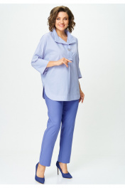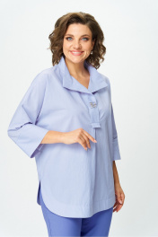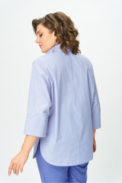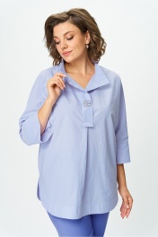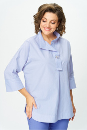 Рубашка со спущенным рукавом3/4 на манжете ,с воротником на стойке,глубину выреза можно регулировать стильной брошкой.Низ округлый с разрезами. Размеры: 50 52 54 56 обхват груди: 110, 114, 118,122; обхват бедер: 110, 114,118, 122; длина рукава (спущенного от горловины): 57 ширина рукава: 44; длина изделия : 74
