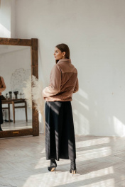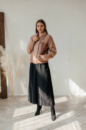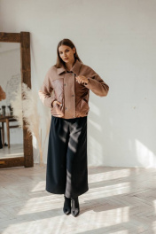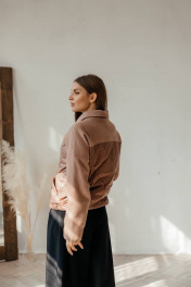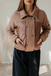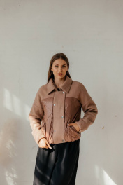 Куртка бомбер демисезонная комбинированная с резинками и утеплителем Стильная леди М-669 шоколад