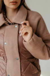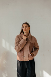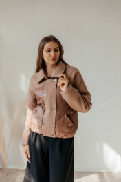 Куртка женская, бомбер. Современная модель, комбинированная, ткань и стеганка. Куртка на подкладке, на утеплителе isosoft. В куртке очень красивая фурнитура, кнопки и молния. Снизу бомбер на плотной резинке, так же на резинке и рукава.