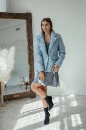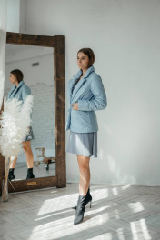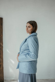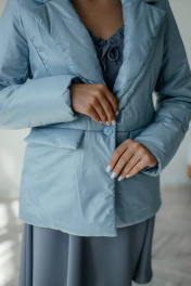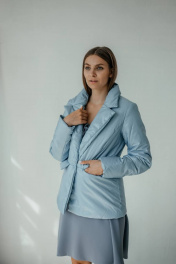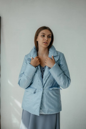 Куртка жакет демисезонная с карманами и застёжкой на пуговицу Стильная леди М-672 голубой