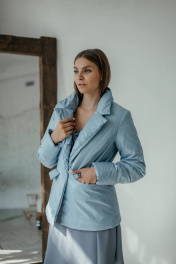 Жакет - куртка - невероятно стильная вещь , прекрасно подойдёт под повседневные образы , на каждый день . Вы будите выглядеть невероятно и эксклюзивно . Куртка - жакет застёгивается на одну пуговицу , имеет два кармана , очень удобно и комфортно ведёт себя в носке.