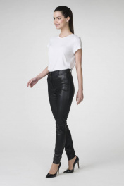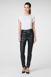 Стильные кожаные брюки зауженного силуэта на поясе.
