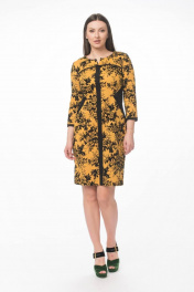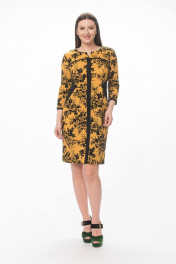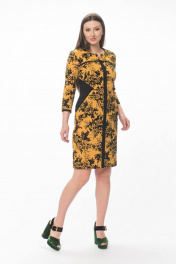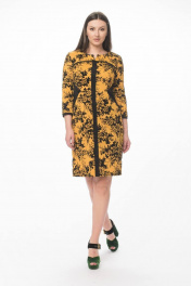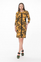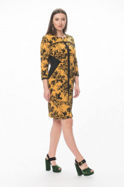Полуприлегающее платье из вискозы с вставками из замши Stilville 1594 горчица