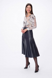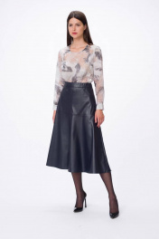 Юбка из эко-кожи приталенная на притачном поясе Stilville 1736 черный - фото 7