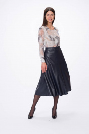 Юбка из эко-кожи приталенная на притачном поясе Stilville 1736 черный - фото 8