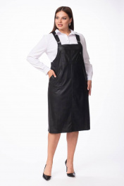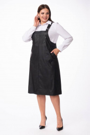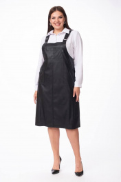 Сарафан из эко-кожи на широких бретелях прямого кроя Stilville 1847 черный - фото 1
