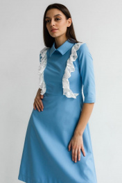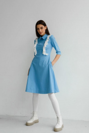Трапециевое платье с декоративными рюшами и карманами STUCILLI 1012 голубой