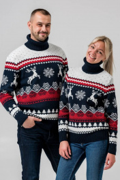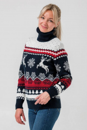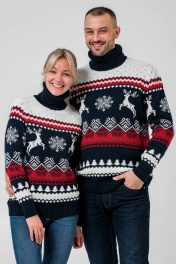 Нарядный рождественский свитер с оленями. Выполнен из мягкой шерстяной пряжи, очень мягкий и уютный