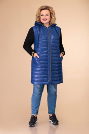Куртка женская прямого силуэта с длинным втачным рукавом. По полочке отрезная кокетка и обработаны прорезные карманы с листочкой. Застежка куртки на молнию. Рукав на манжете. По горловине съёмный капюшон. Длина по центру спинки 88 см Длина рукава 64 см