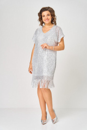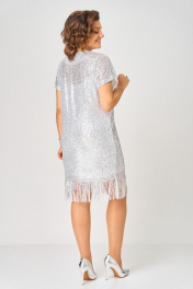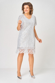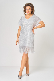Платье нарядное с пайетками и бахромой прямого кроя, выполнено в комплектации из двух предметов. Линия плеча спущена. Вырез горловины v-образный. Нижнее платье полуприлегающего силуэта, на регулируемых бретелях. По линии груди вытачки. Длина платья: 99 см Длина рукава от горловины: 29 см