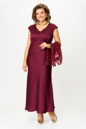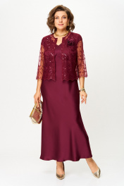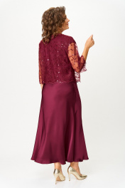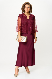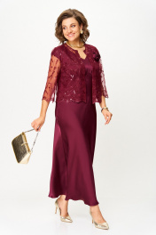 Костюм женский двухпредметный состоящий из платья и жакета. Платье однотонное полуприлегающего силуэта расширенное к низу, со спущенным плечом. Верхняя часть переда фигурная, со сборкой в области груди, что обеспечивает прекрасную посадку и подчеркивает фигуру. Спинка с горизонтальным швом с эластичной тесьмой в верхней части. Жакет укороченный, прямого кроя без застежки, с втачным рукавом 3/4, что придает образу легкость и воздушность. Съемное украшение в виде цветка замечательное дополнение, для создания разнообразных образов. Длина платья по спинке: 125 см Длина жакета по спинке: 50 см Длина рукава: 42 см