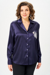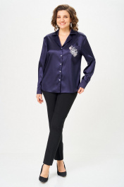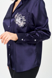Блузка женская из хлопковой ткани, прямого силуэта с втачным рукавом. Линия плеча слегка спущена. Застежка центральная на петли и пуговицы. Воротник отложной с лацканами. Перед с вытачками по линии груди. По левой части переда накладной карман с отделкой. Рукав длинный рубашечный, по низу притачная манжета с застежкой петли и пуговицы. Линия низа фигурная. Фурнитура может меняться от наличия. Длина блузки по спинке: 65 см Длина рукава от горловины: 75 см