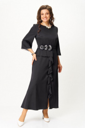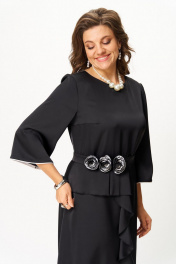 Платье женское вечернее полуприлегающего силуэта с втачным рукавом. Горловины округлой формы. По линии груди вытачки. Застежка на потайную молнию в левом боковом шве. Платье отрезное по линии талии, нижняя часть расклешенная. Нижняя часть переда оформлена воланом, переходящим в шов по переду, что добавляет романтичности и легкости. Нижняя часть спинки со средним швом. Рукав длиной 7/8 расширен к низу с отделкой кантом. По линии талии съемный пояс с украшением ручной работы в виде роз. Такое платье отлично подойдет как для вечернего выхода, так и для более формальных событий. Длина по спинке: 137 см Длина рукава от горловины: 47 см