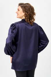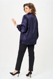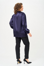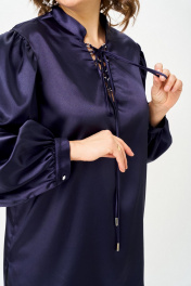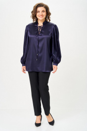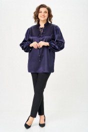 Блузка женская прямого кроя, с втачным рукавом. Горловина v- образной формы с воротником стойкой декорирована контрастной шнуровкой. Спинка цельная. Рукав длинный со сборкой по окату, низ рукава присобран на притачную манжету с застежкой на петлю и пуговицу. В боковых швах обработаны разрезы. Длина блузки по спинке: 73 см Длина рукава: 61 см