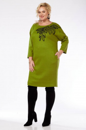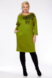 Платье из трикотажа с вышивкой, свободный крой SVT-fashion 587 олива