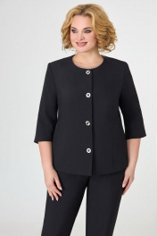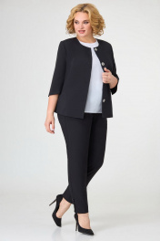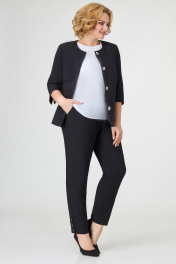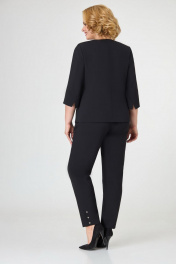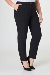 Комплект 2-х предметный, состоящий из жакета и брюк. Жакет однобортный на подкладке. По переду рельефы, по спинке средний шов. Рукав втачной двушовный ¾, по низу с разрезами. Застежка на 4 петли и пуговицы. Длина по спинке 59 (+-1) см., длина рукава 44 (+-1) см. Брюки прямые, слегка заужены к низу, по переду обработаны карманы с отрезными бочками. Пояс притачной с резинкой по спинке. По низу брюк в боковом шве выполнена _ и закреплена 3-мя пуговицами. Длина 104 (+-1) см.