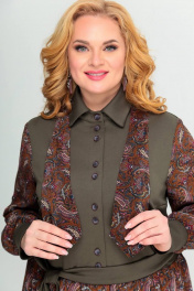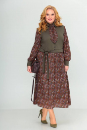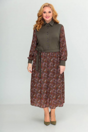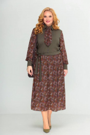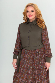 Платье Swallow 416 темно-оливковый/принт_огурцы - фото 1