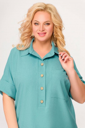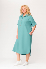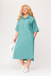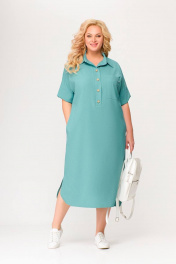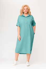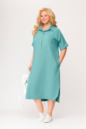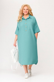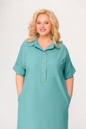 Бирюзовое платье из вискозно-льняной ткани с รอบом и карманами Swallow 496.2 мята