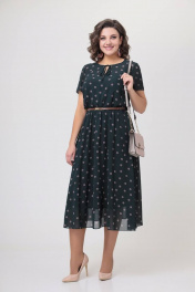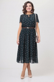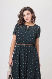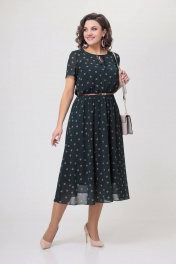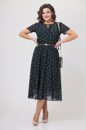 Платье шифоновое в горошек с завязкой и капелькой на талии Swallow 536 зеленый/бежевый_горох