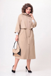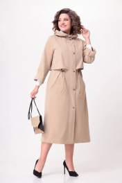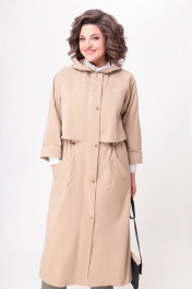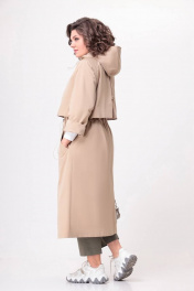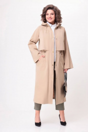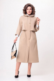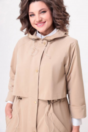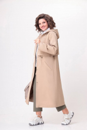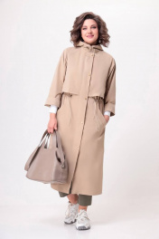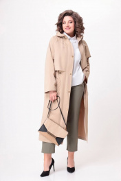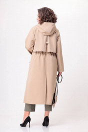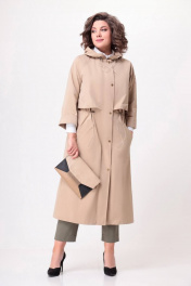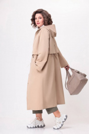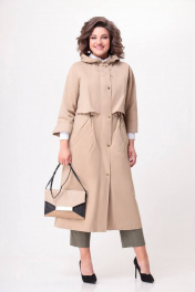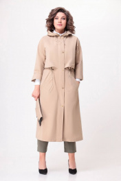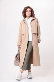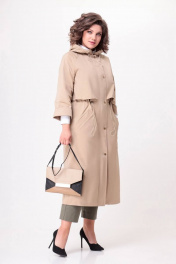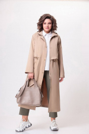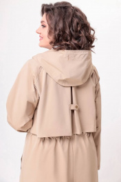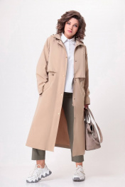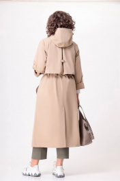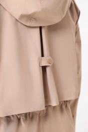Плащ женский прямого силуэта, выполнен из качественной голландской плащевой ткани. Рукав длинный, "реглан". Плащ со стойкой и капюшоном. Изделие с центральной застёжкой на тесьму-молнию. Молния закрыта планкой, которая застёгивается на пробивные декоративные кнопки. По переду и спинке плаща - отлетная кокетка. По спинке кокетки заложена встречная складка, которая застёгивается патой на пробивную кнопку. В нижней части переда обработаны прорезные карманы с листочками. Капюшон и талия регулируется двойными резинками и фиксаторами. В нижней центральной части спинки обработана шлица. Длина рукава от верхней плечевой точки до низа рукава 75см. Длина изделия по центру спинки 117см.