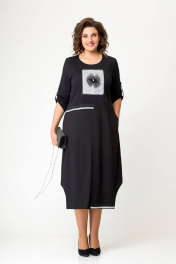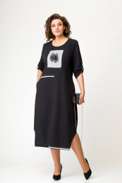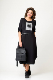 Платье свободного силуэта из футера и хлопчатобумажной ткани Swallow 643 черный
