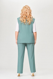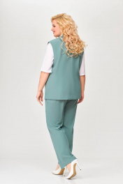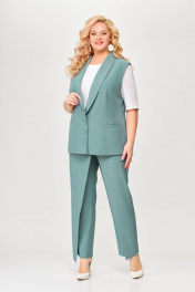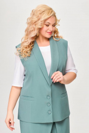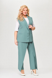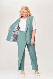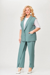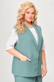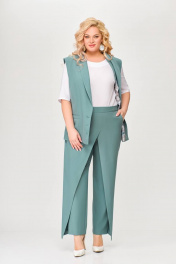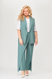 Костюм, состоящий из жилета и брюк. Жилет и брюки выполнены из плательно-костюмной ткани. Жилет на подкладке. Перед жилета с рельефами. По линии талии обработаны прорезные карманы с листочками. Воротник -“шаль” жакетного типа. По спинке - средний шов и рельефы. Жилет с центральной застежкой на 3 петли и 3 обтяжные пуговицы. Длина жилета по спинке 67см (+/-1 см) Брюки прямые, c декоративным запахом по переду. По задним половинкам брюк обработаны талиевые вытачки. По переду обработаны карманы с отрезными бочками. Брюки застёгиваются в боковом шве на декоративную молнию. Верх брюк обработан притачным поясом, по спинке которого вставлена резинка. Длина брюк по боковому швуот пояса до низа 100 см (+/-1см). Данная модель очень хорошо сочетается с блузой Модель 534.