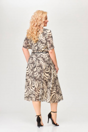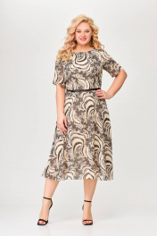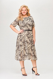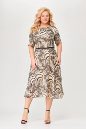 Платье из шифона с талиевыми вытачками и расклешенной юбкой Swallow 661 принт_бежево-черный