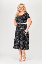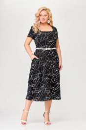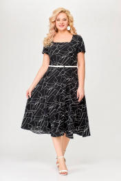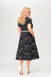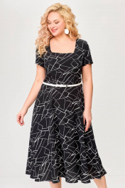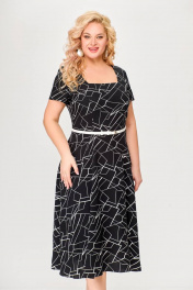 Платье полуприлегающего силуэта из эластичной хлопковой ткани. Платье отрезное по линии талии. По переду лифа расположены рельефные швы. Спинка лифа с рельефными швами и средним швом. Юбка клешеная с карманами в боковых швах. По спинке предусмотрена потайная молния. Рукав короткий, втачной, одношовный. Длина платья 52р, 54р, 56р Длинна рукава 52р, 54р, 56р В комплекте ремень шириной 1,4 см с декоративной пряжкой. В зависимости от партии ремень (пряжка) может меняться.