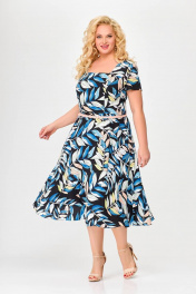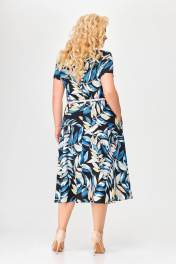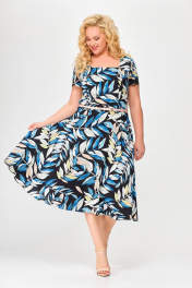 Платье полуприлегающего силуэта из хлопка с ремнем и карманами Swallow 667.2 принт_цветные_листья