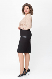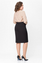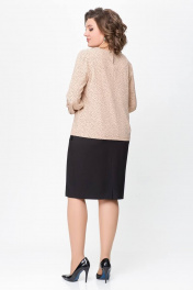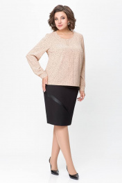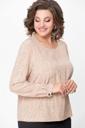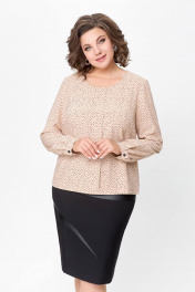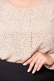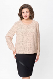 Блуза из поливискозной эластичной ткани с бантовой складкой Swallow 688.1 бежевый/принт_черные_камни