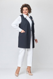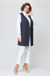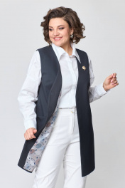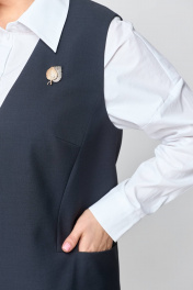Жилет женский на подкладке, однобортный, прямого силуэта из костюмной ткани. Спинка со средним швом. Передняя часть с боковыми рельефами и нагрудными вытачками. В нижней части рельефов расположены карманы. Горловина V-образной формы. Застёжка центрально-бортовая на три потайные магнитные кнопки. Подкладка декоративная с рисунком. Длина жилета по спинке в размерах 52, 54, 56 – 85 см (±3 см); в размерах 58, 60, 62 – 87 см (±3 см) В комплект входит декоративное украшение. Рост модели на фото 170 см. Цвет изделия может отличаться по тону в зависимости от настроек вашего монитора.